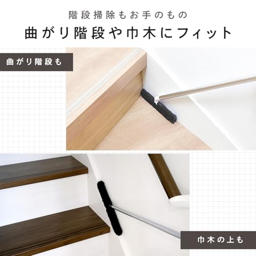 ●ケースに通すだけでいつでもモップがキレイ!ケースに溜まったホコリはまとめてポイ! ●くり返し使えるので経済的。モップ部分を取り換える必要はありません。 ●モップはケースに通すとキレイになり、ホコリは徐々にまとまって溜まります。 ●シンプルな形状のケースのため手の取りやすい場所に置きやすく、いつでもサッとお掃除できます。 ●スティック形状のモップのためフローリングや階段、隙間などのホコリ取りに便利です。またカーブしている階段の角にも届きます。 ●ラグ用ブラシ付きなので、ラグ・カーペット等に付いた糸くずやペットの毛のお掃除にも使えます。