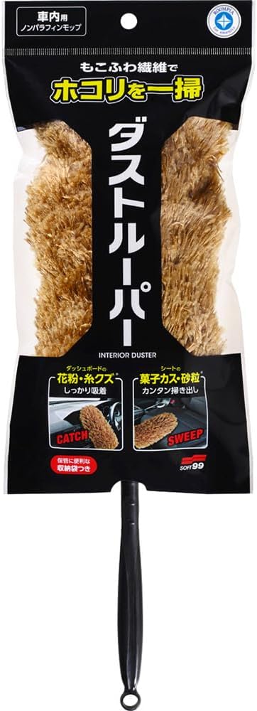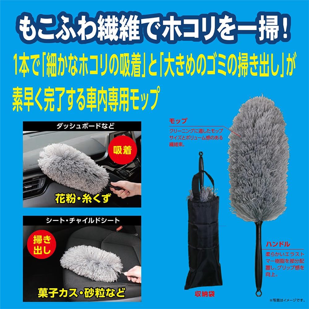 ●1本で「細かなホコリの吸着」と「大きめのゴミの掃き出し」が素早く完了する車内専用モップです。●柄の全周囲を覆うカールエージ加工の極細繊維がパーツやシートのスキマのホコリも逃さず吸着します。●ノンパラフィンタイプなので、使用後もベトつきやギラつきがありません。●自動車車内用ホコリ取り用。