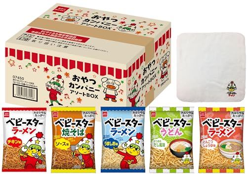 【公式】ベビースターラーメンミニ 5種アソートBOX ミニタオル付 1箱 | 駄菓子 業務用 イベント利用 景品にも 大人買い チキン味 焼そば味 うましお味 とんこつしょうゆ味 かつおのだし風味 お