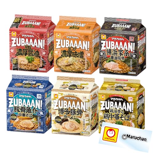 【限定】マルちゃん ZUBAAAN! 6種類セット 3食パック (計18食) 醤油 ×1 味噌 ×1 豚骨 ×1 博多豚骨ラーメン×1 横浜家系醤油とんこつ×1 鶏中華 ×1