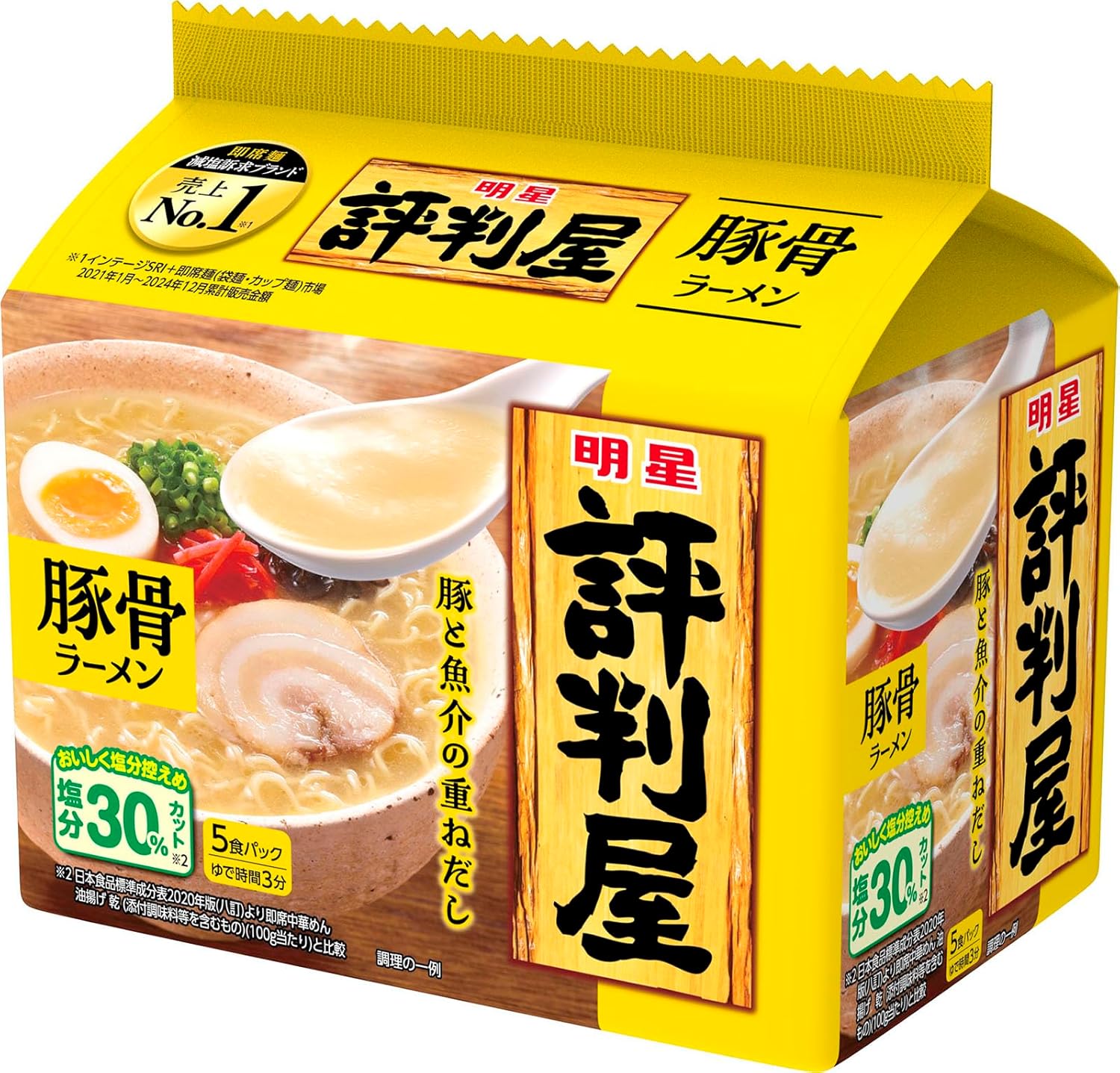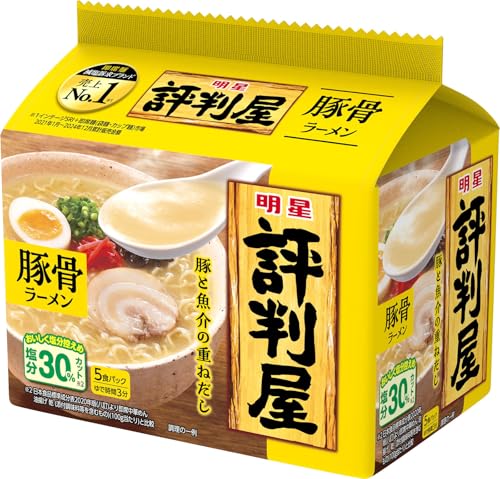 明星 評判屋 豚骨ラーメン 5食パック[6個入、インスタント麺、即席めん減塩訴求ブランド売上№1※1、塩分30%カット※2、豚と魚介の重ねだし、五島灘の塩、425g]