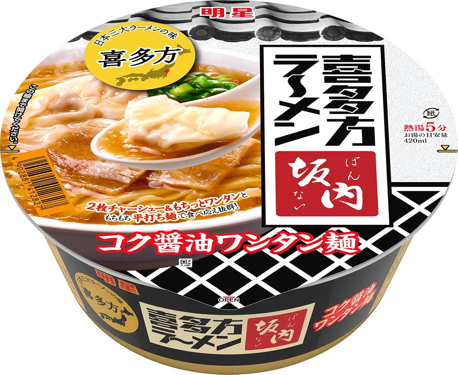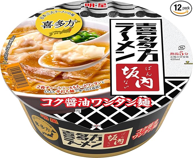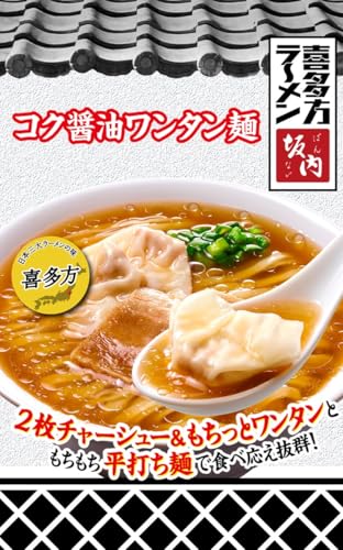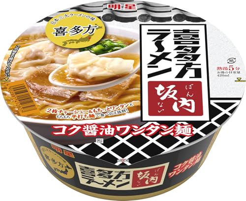 明星 喜多方ラーメン坂内 コク醤油ワンタン麺(名店監修、日本三大ラーメン、平打ち麺、2枚チャーシュー)108g ×12個