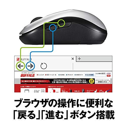 バッファロー マウス 無線 ワイヤレス 5ボタン 【戻る/進むボタン搭載】 小型 軽量 節電モデル 最大584日使用可能 BlueLED シルバー BSMBW315SV