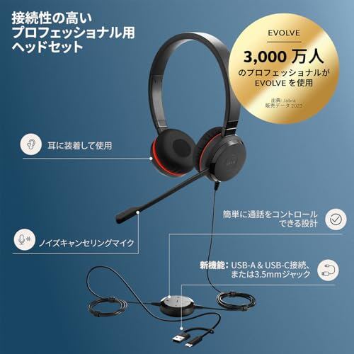 【2026年モデル】Jabra ヘッドセット Evolve 20 SE MS Stereo USB C/A 両耳 有線 ヘッドホン マイク付き ステレオ USB-C/USB-A接続【メーカー2年保証付