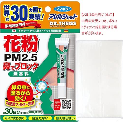 アレルシャット 花粉 鼻でブロック 無香料 チューブ入 花粉対策 約30日分 + おまけ付き 花粉 PM2.5 黄砂 鼻の中に塗るだけ フマキラー 【 限定】