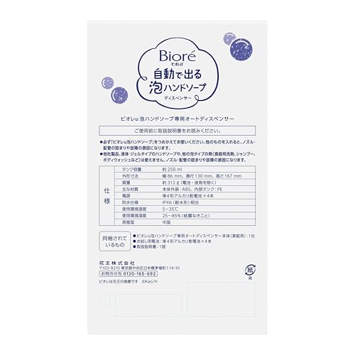 ビオレuの『手肌に優しいなめらか泡』が自動で!! ご使用時にポンプに触れる必要がなく、衛生的。 手をかざすだけで自動に出てくるので、お子様でもカンタンにご使用いただけます。 ~快適に使えるこだわり設計~ ①詰め替え簡単!大きな蓋をパカッと開けて注ぐだけ! ②防水機能つきなので、外も中もまるごと洗浄いただけます! ③底面にシリコーンゴムがついているから、滑りにくく、倒れにくい! ④ビオレu泡ハンドソープポンプとほとんど同サイズのコンパクトな設計 ⑤手をかざしやすい「くちばしノズル」設計
