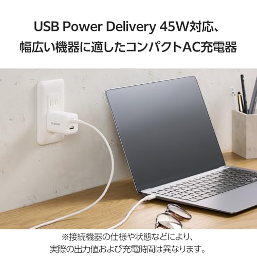 USB Power Delivery 45Wで充電可能。MacBook Airなどの対応するノートパソコンや、iPadなどのタブレットも充電できます。