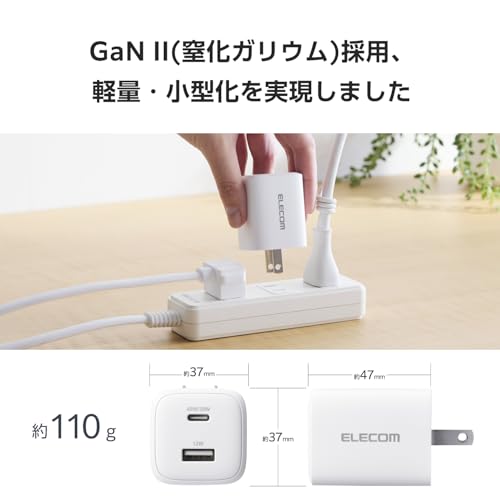 エレコム 充電器 45W 2ポート Type-C USB-A USB PD対応 PPS対応 GaN II採用 折りたたみ式プラグ ホワイト EC-AC11045WH