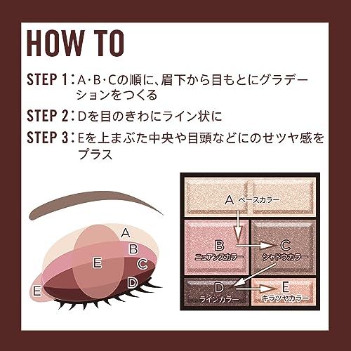 ●指またはチップでA・B・C・Dの順にグラデーションを作ります。 ●Aを下まぶたにつけると立体感が生まれ、より大きな目元に仕上がります。※ 指でつけると、さらに透明感・ツヤ感がアップします。