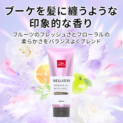 白髪・うねり・ツヤのケアをこの1本で! 白髪が1回で染まる、白髪用ヘアカラートリートメント 【製品特長】 ●白髪が1回で染まる ウエラ史上ベストバランスの色処方へ新改良。白髪がなじみやすい処方へ組み替えました。 ●うねり・ツヤのケア うねりを抑え、髪全体にまとまりとつやを与える「輝きベールテクノロジー」を搭載。 髪のうねり箇所一本一本を包み込み、うねりを抑えます。 また、髪表面をなめらかで絡まりにくくし、全体にまとまりとツヤを与えます。 ●贅沢なブーケを髪に纏うような印象的な香り 青リンゴ、マンダリンのフレッシュさ、柔らかくほのかに甘みを感じさせるアイリスやクチナシのフローラルさ、またほんのり香るローズの花びら、ホワイトムスクの甘く温かみのある香り。 それぞれの個性を生かしつつ、バランスよくブレンドしました。 ●全3色:現在の髪の明るさで色を選んでください。 ・キャラメルブラウン(いま髪がかなり明るい方) ・モカブラウン(いま髪がやや明るい方) ・アッシュブラック(いま髪が暗い方) 【使用方法】 (1) シャンプー後、水気をよく切り、髪の根元から毛先にかけて全体に塗布します。白髪が気になる部分には、多めに塗布してください。 (2) 5分放置後に、すすぎ水に色が出なくなるまでよくすすぎます。少し長めに 時間をおくとより効果的です。 (3) 汚れてもかまわないタオルで水気をとり、ドライヤーでしっかり乾かします。 ※初めてお使いになる時は、1日1回、3日間連続でご使用ください。その後は、週に2~3回を目安にご使用いただくと、色合いを長く楽しめます。 【使用上の注意】 ●今までにヘアカラー・タトゥー(刺青)でかぶれたことのある方は使用しないでください。 ●酸化染毛剤ではありませんが、全ての方に皮膚刺激やアレルギーが生じないというわけではありません。 ●頭皮に傷、湿疹、はれもの等の異常がある時は使用しないでください。 ●使用中や使用後に、刺激等の異常が現れた時は使用を中止し、皮膚科専門医等へのご相談を使用可能します。 ●目に入らないように注意してください。万一目に入った時は、すぐに水またはぬるま湯でよく洗い流してください。 ●乳幼児の手の届かないところに保管してください。 ●極端に高温または低温の場所、直射日光の当たる場所には保管しないでください。 ●使用後はしっかりとキャップを締めてください。 【汚れに関するご注意】 ●手肌や爪の間に入って色がつくと取れにくい場合がありますので、すぐに石けんなどでよく洗ってください。 ●汚れが気になる方は、市販の手袋のご使用を使用可能いたします。 ●衣服や布等に色がつくと、洗っても取れませんので、ご注意ください。 ●汚れに関する他の注意事項につきましては、製品ホームページをご確認ください。