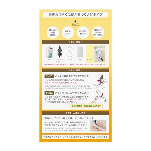 ご注意 ●傷、はれもの、湿疹等異常のあるところには使わない。 ●肌に異常が生じていないかよく注意して使う。肌に合わない時や、使用中、赤み、はれ、かゆみ、刺激、色抜け(白斑等)や黒ずみ等の異常が出た時、また日光があたって同じような異常が出た時は使用を中止し、皮フ科医へ相談する。使い続けると症状が悪化することがある。 ●クリームや洗髪時のすすぎ液が目に入らないように注意し、目に入った時はすぐに充分洗い流す。 ●頭髪以外(眉毛やまつ毛等)の部分に使用しない。 ●子供や認知症の方などの誤食等を防ぐため、置き場所に注意する。 汚れに関するご注意 ●爪に色がつくと落ちにくいので、必ず手袋をご使用ください。 ●浴室内の浴槽、タイル、床、壁、鏡等についた場合はすぐに洗い流してください。 ●使用後はパックやポンプ部分についたクリームは洗い流してください。 ●髪がぬれた状態では色落ちし、衣類等につく場合があります。