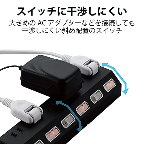 エレコム 電源タップ 雷ガード 10個口 個別スイッチ ホコリ防止シャッター付き スイングプラグ 2.5m ブラック ECT-1625BK