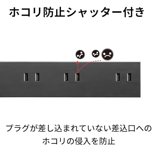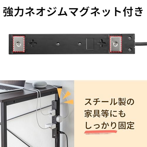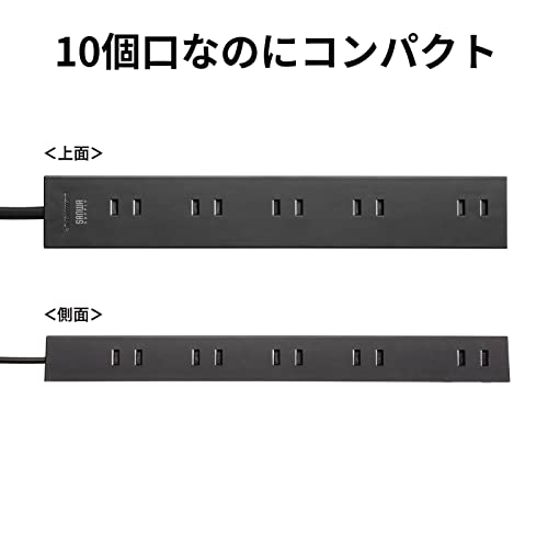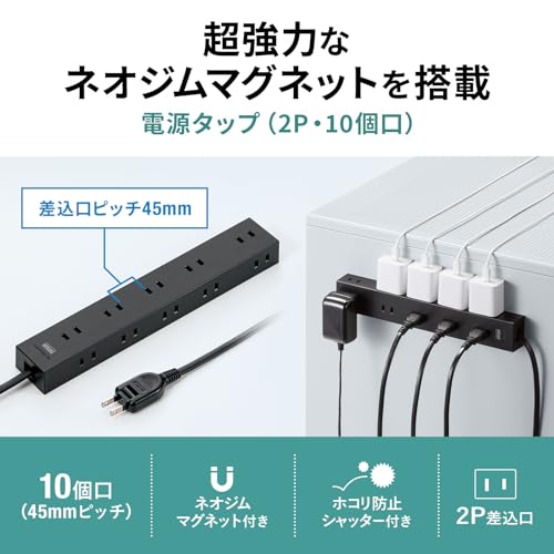 サンワサプライ(Sanwa Supply) 電源タップ 10個口・2P (1m) たくさん挿せるレイアウト 強力ネオジムマグネット ほこりシャッター スイングプラグ ブラック TAP-2210-1BK