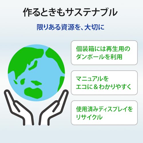 【作るときもサステナブル】個装箱には再生用のダンボールを利用しております。また、製品へ添付する取扱説明書はサイズを縮小し、オンラインマニュ アルを拡充しました。