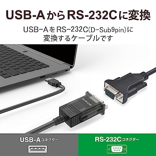 【仕様】 ■コネクタ形状(パソコン側):USB-Aプラグ ■コネクタ形状(デバイス側):RS-232C(D-Sub9pin)プラグ ■規格:USB Specification1.1準拠 ■接続対応機器:USB-Aポート搭載のWindowsパソコンおよび、RS-232C(D-Sub9pin)ポート搭載のデバイス(モデム、TA、PDAなど) ■対応OS:Windows 11/Windows 10/Windows 7/Windows XP ※各OSの最新バージョンへのアップデートや、サービスパックのインストールが必要になる場合があります。 ■ケーブル長:約0.5m ※コネクター含む ■ケーブル太さ:約4.5mm ■電源供給方式:バスパワー方式 ■最大消費電流:100mA以下 ■シールド方法:3重シールド ■カラー:グラファイト ■環境配慮事項:EU RoHS指令準拠(10物質)、THINK ECOLOGYマーク ■パッケージ形態:紙箱 ■付属品:ドライバーCD、マニュアル(セットアップガイド) ■保証期間:1年間 【説明】 ■パソコンのUSB-AポートをRS-232C(D-Sub9pin)ポートに変換し、PDAやモデム・TAなどのRS-232C周辺機器とデータ転送ができる変換ケーブルです。 ■付属のドライバーCDからドライバーをインストールすることで、RS-232C(D-Sub9pin)ポート非搭載のパソコンにCOMポートを割り当て、データ転送が可能です。 ■USB Specification1.1(Full-speed)に準拠しており、データ転送速度は最大12Mbpsまで対応しています。※理論値 ■Windows 11/Windows 10/Windows 7/Windows XPに対応しています。※各OSの最新バージョンへのアップデートや、サービスパックのインストールが必要になる場合があります。 ■USBのバスパワーによる電源供給に対応しており、ACアダプターなどの外部電源が不要です。 ■外部ノイズの干渉を受けにくい3重シールドケーブルを採用しています。 ※接続機器によっては動作しない場合があります。 ■EUの「RoHS指令(電気・電子機器に対する特定有害物質の使用制限)」に準拠(10物質)した、環境にやさしい製品です。 ■自社環境認定基準を1つ以上満たし、『THINK ECOLOGY』マークを表示した製品です。 ■環境保全に取り組み、製品の包装容器におけるプラスチック重量を、社内基準製品より20%以上削減した製品です。 ■環境保全に取り組み、製品の包装容器が紙・ダンボール・ポリ袋のみで構成されている製品です。 【商品に関するお問い合わせ】 エレコム総合インフォメーションセンター TEL. 0570-084-465 FAX. 0570-050-012 受付時間 / 10:00~19:00 年中無休 チャットサポートも可能です。詳細は 8056.jpをご確認ください。