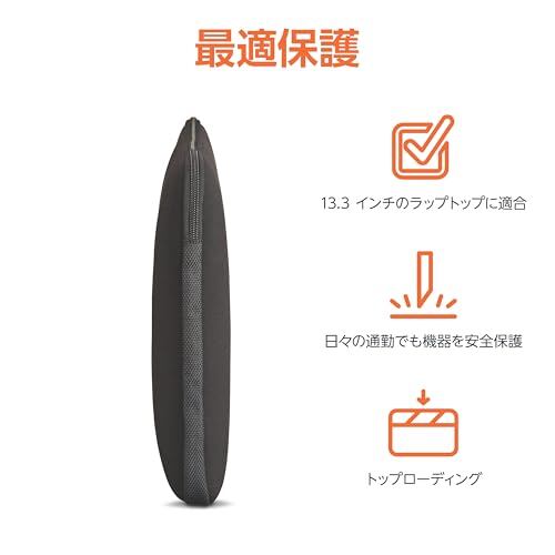 Amazonベーシック ラップトップスリーブ 13.3インチ はあなたのノートパソコンをスタイリッシュに保護します。衝撃や傷からノートパソコンを保護します。ベーシック ラップトップスリーブは、衝撃や破片などによる傷からノートパソコンをしっかり保護します。かさばらず持ち運びも簡単で、上部全体にジッパーがついて開閉できるのでノートパソコンの出し入れも簡単です。