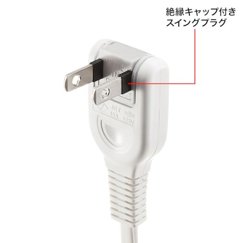 サンワサプライ 電源延長コード 5m トラッキング火災予防絶縁キャップ付きスイングプラグ TAP-EX2105 ホワイト