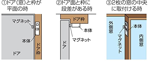 ドアや扉、窓が開いてから30秒後に音声やアラームがなり続ける。閉まると止まる (※30秒以内に閉まるとお知らせしません) ドア・扉や窓・冷蔵庫・フリーザーに お知らせ音は音声やアラームなど8種類 1.ドアがあいています 2.窓があいています 3.冷蔵庫があいています 4.冷凍庫があいています 5.あいています 6.ピピピ音 (遅) 7.ピピピ音 (中) 8.ピピピ音 (速) 【重要なお知らせ】2024年1月 リーベックス株式会社はナカバヤシ株式会社と合併いたしました REVEX(リーベックス)ブランドはナカバヤシの製品です 合併に伴い、会社名・住所・電話番号・FAX番号が変更となっております ご購入頂いた商品に記載のお問い合わせ先やパッケージが変更となっている場合がございます 予めご了承くださいませ