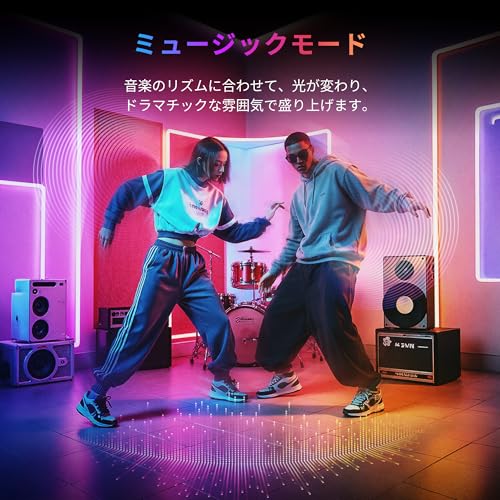 【十人十色の操作スタイル】音声操作(Alexa/Google Home)・アプリ・リモコン・タイマーなど、多様な操作スタイルでお子さまからご年配の方まで、どんな人でも自分に合った方法でテープライトをコントロールいただけます。また、ハブ不要でWi-Fi/Bluetoothを通して直接操作可能。音に合わせて光が踊るミュージックモードも搭載。