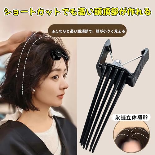 【多種多様な髪型に対応:ショートヘアでもロングヘアでも使える】ヘアボリュームピンチャーは髪型を選びません。ロングヘアで使うと、毛根を挟むだけで膨らみを出すことができ;ショートヘアで使っても同じように、頭頂部の「つぶれ」を解消できます。肩までのショートヘア、男性の前髪、ロングカールヘアなど、どんな髪型でも、まるで毛根に「空気を送る」ように、髪に持久的な立体感と形を与えてくれます。