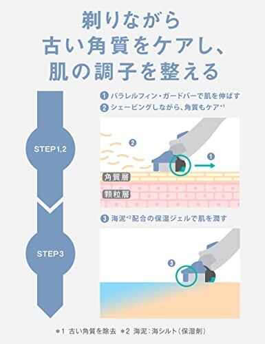 ●潤いながら角質ケア*1 (*1古い角質を除去) ●海泥*2配合の保湿ジェル (*2海泥:海シルト(保湿剤)) ●剃りながら古い角質をケアし、肌の調整を整える ●「スキンガード付5枚刃」が、肌上の動きをコントロールして摩擦を軽減 ●「パラレルフィン・ガードバー」が、古い角質をはがれやすくする ●「フリップ式トリマー®」で鼻の下やモミアゲなどの細かい部分も簡単に剃れる