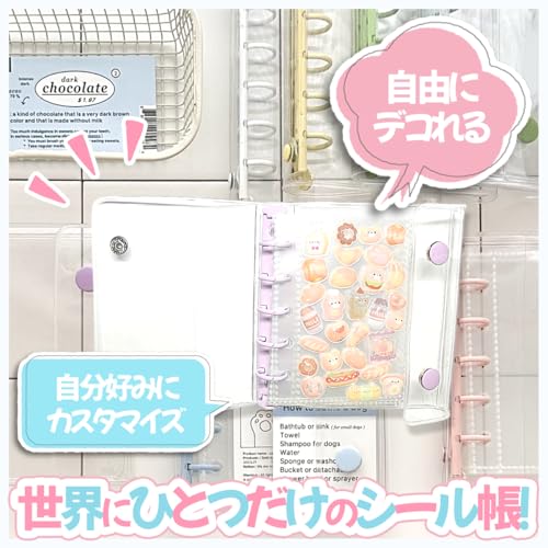 シール帳 透明 大きめ 台紙 【リフィル20枚付】 はがせる 5穴リングファイル 女の子 シールバインダー クリア シール台紙 シール手帳 シールブック R.D.A. (ライトブルー)