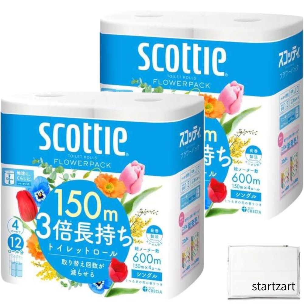 トイレットペーパーは、1ロール150mの長尺タイプで通常の約3倍長持ち。交換の手間が減り、4ロールで12ロール分の長さを実現します。コンパクトで収納スペースを節約でき、防災備蓄や省スペース収納にも最適です。 柔らかな肌ざわりを生み出すエンボス加工と、蛍光染料不使用のやさしい仕上げで、日常から非常時まで安心してお使いいただけます。 再生紙パックなどを活用したエコ仕様で環境にも配慮。家庭用ホルダー対応サイズで、日常生活の快適さと持続可能性を両立します。 お得な2セット+オリジナルポケットティッシュ付きで、まとめ買いにも最適です。【startzartオリジナルセット】