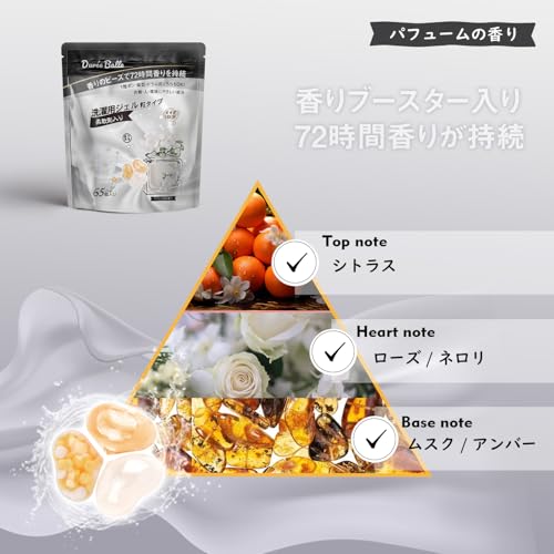 ●ポンと1粒洗濯機にいれるだけ。●1粒の中に洗剤・柔軟剤・72時間香りを持続するビーズが入っているので簡単に洗濯ができます。●わずらわしい計量なども要りません。●泡切れも良いのですすぎも1回でOKです。●縦型・ドラム式どちらもOK。●水50L又は洗濯物4.5kg以上の場合は2粒入れてください。