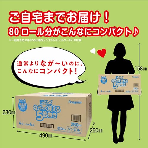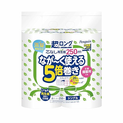 【ケース販売】丸富製紙 ペンギン超ロング再生紙トイレットロール 250m 4ロール シングル×4