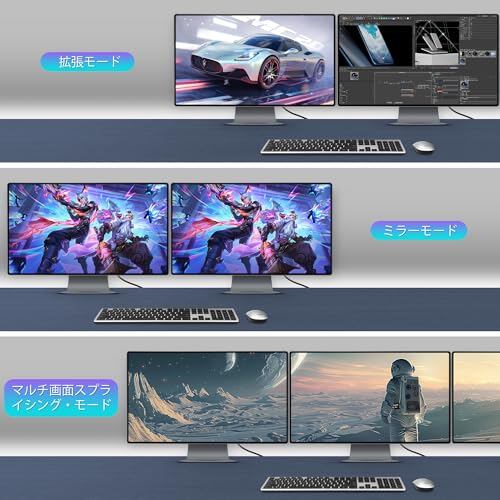プロ仕様のビデオ伝送:最大8K解像度表示、超クリアな画質、遅延のないスムーズな表示をサポート。MSTデイジーチェーン接続に対応し、エンタープライズレベルのマルチスクリーンオフィスやプロフェッショナルレベルのマルチスクリーンディスプレイのニーズを満たします。